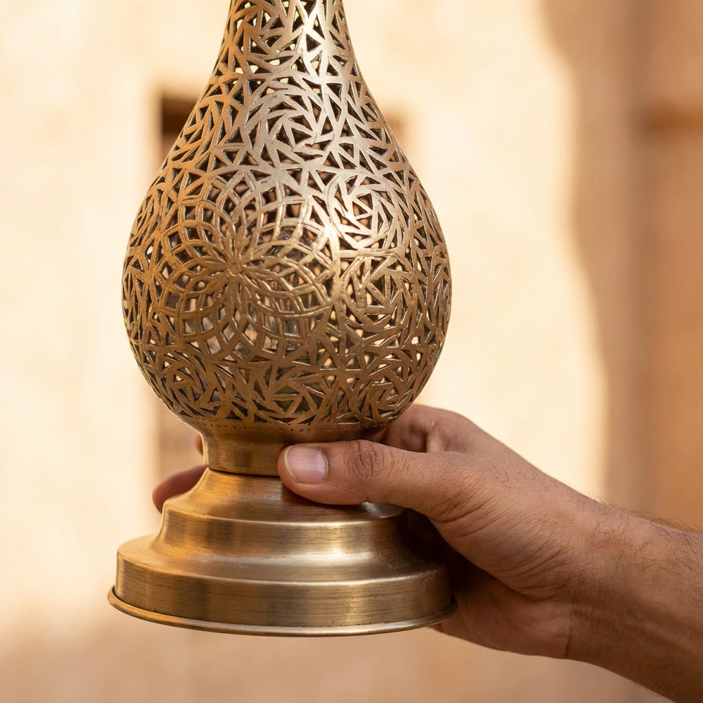 Handmade Moroccan brass lamp that would look amazing in any corner of your home. Add a gorgeous piece of Moroccan lighting to your home decor theme