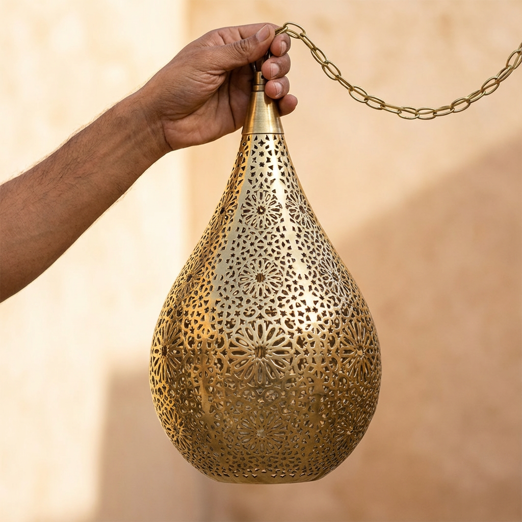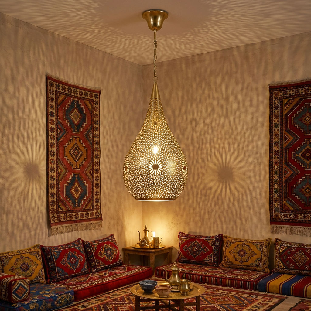 Our Moroccan Ball Pendant Light is entirely handmade, boasting a design that produces a unique shadow effect. Elevate your ceilings and transform your personal space with this large pendant lighting. The bright light source is perfect for reading a book, adding both style and functionality to your environment. Immerse yourself in the enchanting play of light and shadow that this exquisite piece brings to your living space.