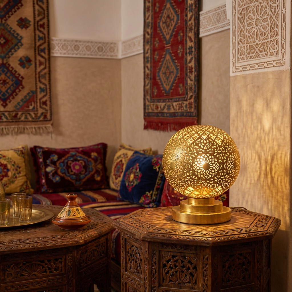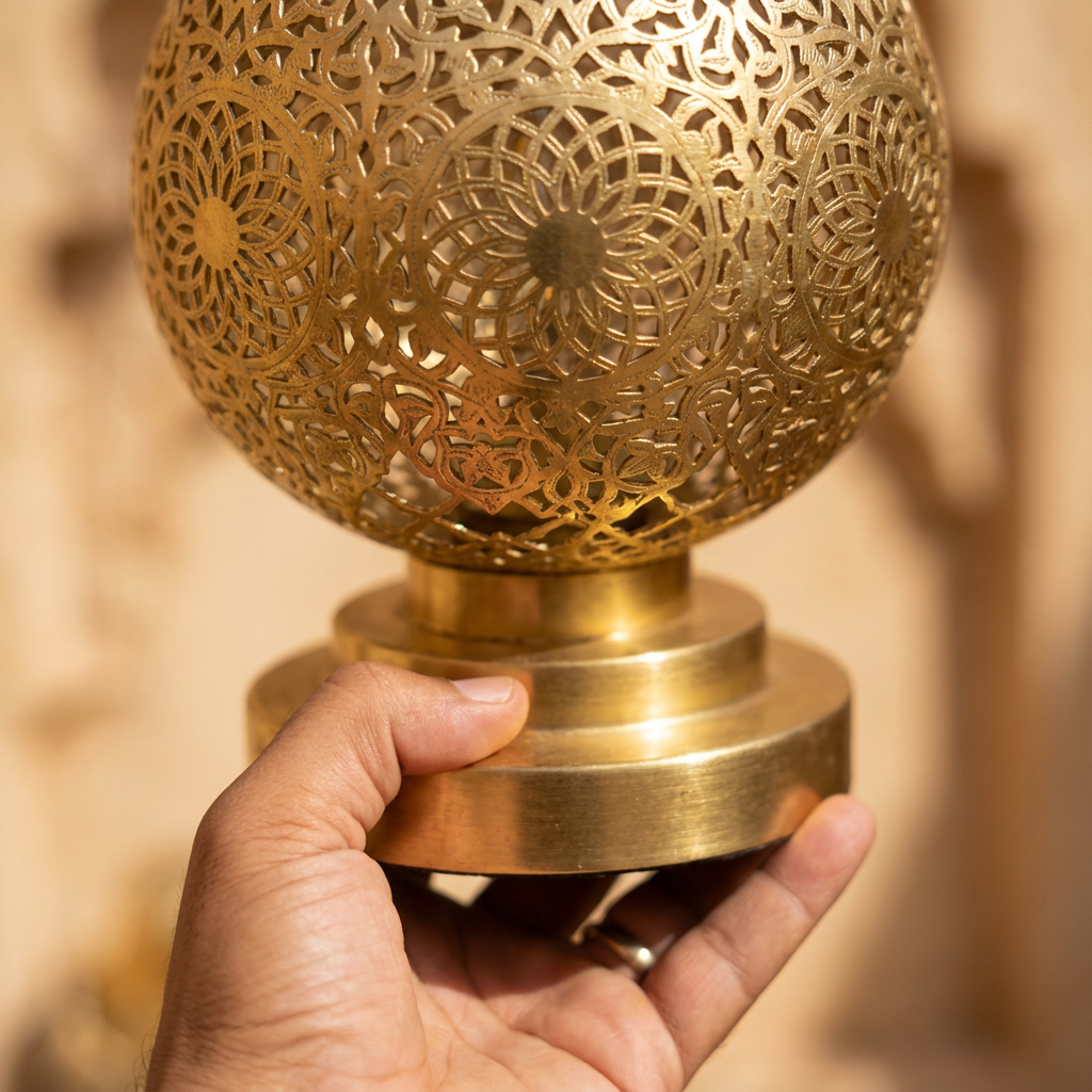 We crafted Light Metal Moroccan Table Lamp will bring your room the flairs of the orient. Even unlit this crafted work of art, the Moroccan table lamp brings an eye-catching attraction to the room. Being made of vintage look metal with little reflective lights shadows and fine cut of metal by expert craftsmanship, the table light will last for generations.